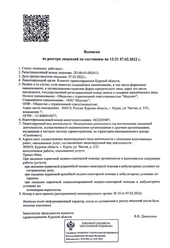 👍 Хочу сказать «большое спасибо» персоналу МедЭлит за квалифицированную помощь и оперативное реагирование. Очень быстро разобрались в проблеме, оказали своевременную психологическую помощь и поддержку. Особенно хочется отметить клинического психолога Евсюкову О.С. за ее профессионализм и качество предоставленного лечения. Очень внимательные администраторы никогда не забывают перезвонить, всегда помнят о моих пожеланиях и откликаются. Как ни странно, но действительно индивидуальный подход! Рекомендую!